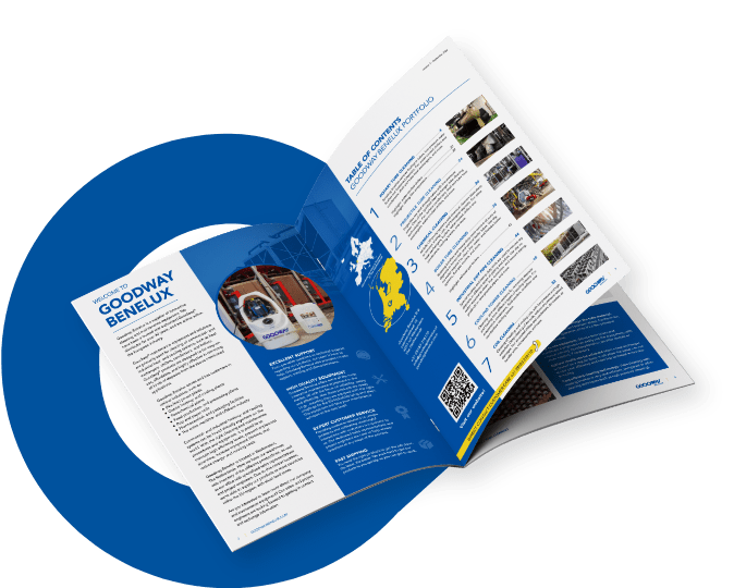 Goodway Benelux lleva más de 30 años suministrando innovadores equipos de limpieza y mantenimiento a los mercados europeos de HVAC e industrial. Como distribuidor autorizado y de confianza de Goodway®, la empresa proporciona apoyo experto, soluciones y equipos para la limpieza y el mantenimiento de sistemas comerciales e industriales de calefacción y refrigeración, incluidos intercambiadores de calor, enfriadoras, condensadores, calderas y torres de refrigeración.