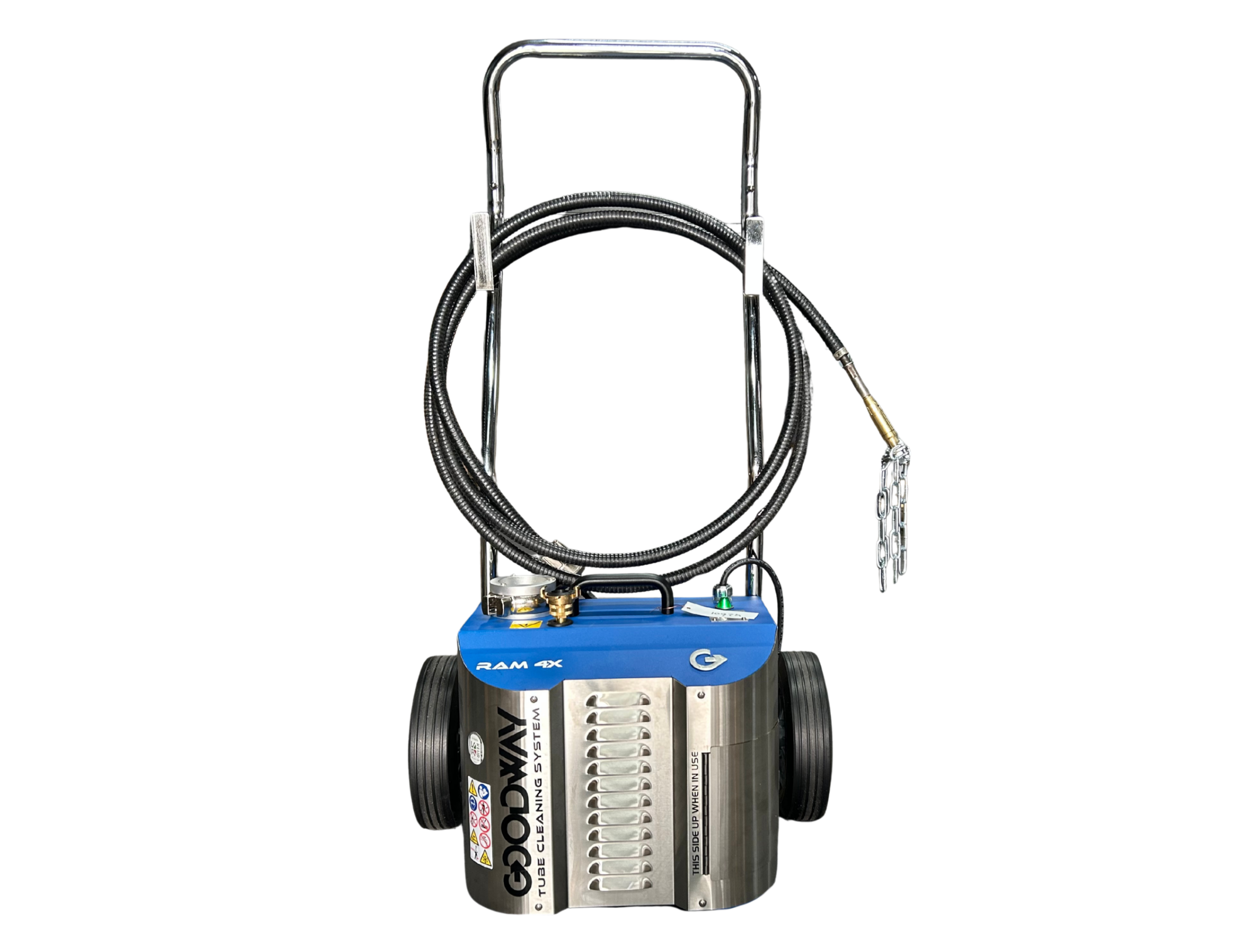 Para la primera pasada de limpieza, Goodway Benelux recomienda utilizar barredoras de cadenas, que son muy eficaces para eliminar la acumulación de depósitos duros y residuos en el interior de los tubos.