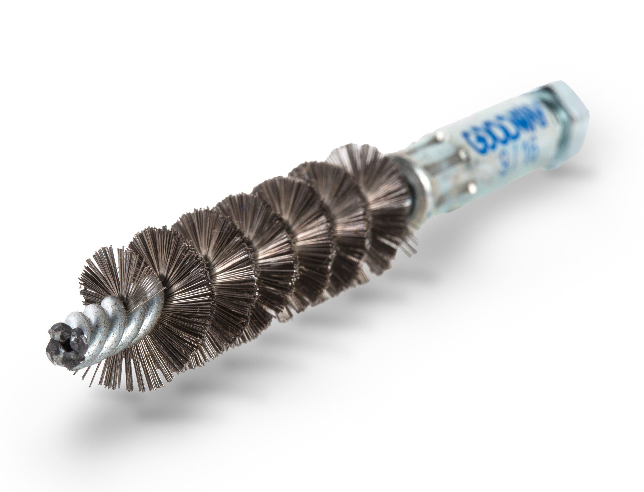 Fabricadas en acero inoxidable, estas escobillas son la opción más agresiva de Goodway, diseñadas para eliminar los depósitos más resistentes de los tubos de los intercambiadores de calor. Son la elección ideal cuando ningún otro cepillo limpiatubos Goodway puede eliminar completamente los depósitos. Dado que el acero inoxidable es relativamente duro, existe un ligero riesgo de rayar la superficie del tubo – consulta a nuestro equipo para que te oriente antes de su uso.