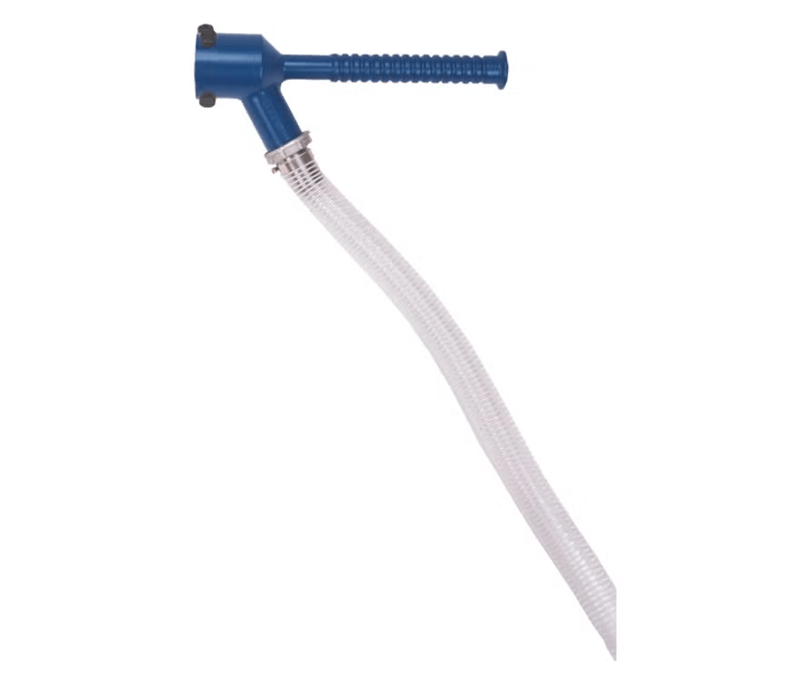 La herramienta Goodway GTC-DPA está diseñada para aspirar de forma segura y eficaz los depósitos de hollín e incrustaciones durante la limpieza de los tubos de humo de las calderas. Es compatible con los limpiadores de tubos AWT-100, AWT-100X y RAM-4X para la recuperación de depósitos secos. Un eje flexible negro se introduce por la parte posterior de la herramienta de recogida, mientras que un accesorio de aspiración se conecta a la parte inferior. A medida que se desprenden los depósitos, son aspirados inmediatamente por el aspirador, garantizando una recuperación rápida y segura.
