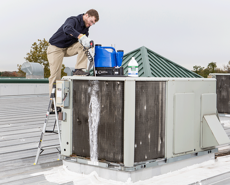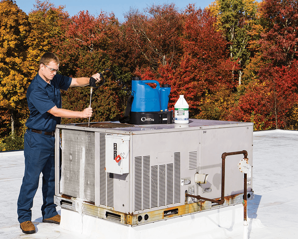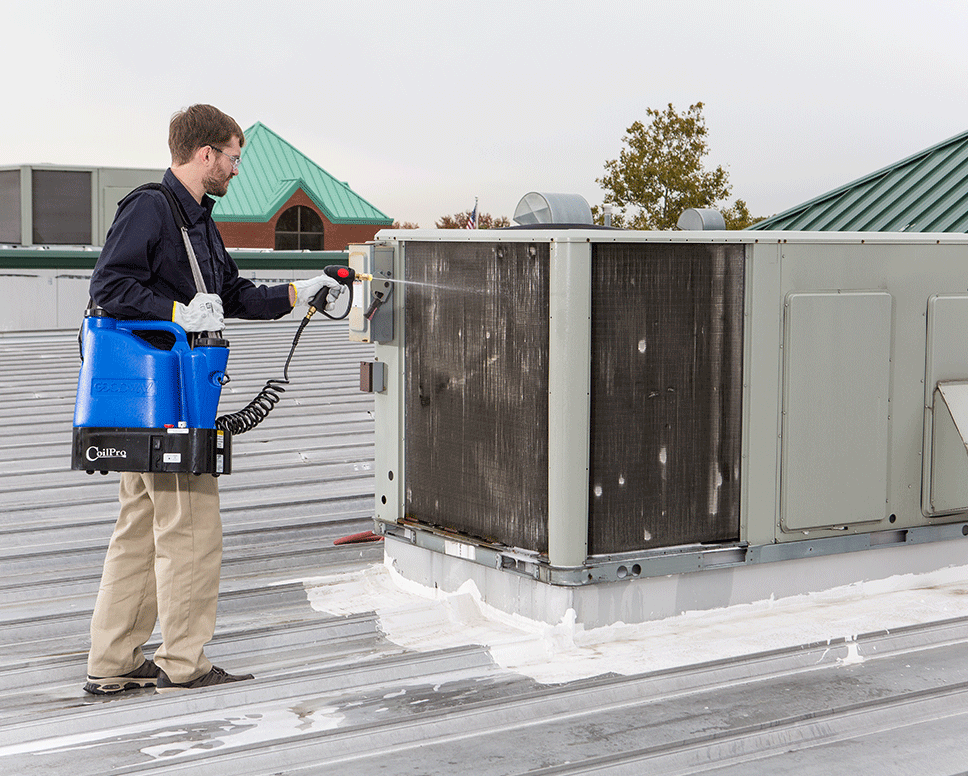 El Goodway CC-JR está diseñado como una herramienta versátil de limpieza de serpentines para empresas de limpieza profesionales que realizan regularmente el mantenimiento de pequeños intercambiadores de calor refrigerados por aire, como los sistemas de aire acondicionado. Una limpieza adecuada de la batería es esencial, ya que estos sistemas suelen estar muy sucios. Al proporcionar una solución capaz de utilizar tanto agua como agente limpiador, el CC-JR permite limpiar las bobinas de aire acondicionado de forma mucho más exhaustiva y eficaz.