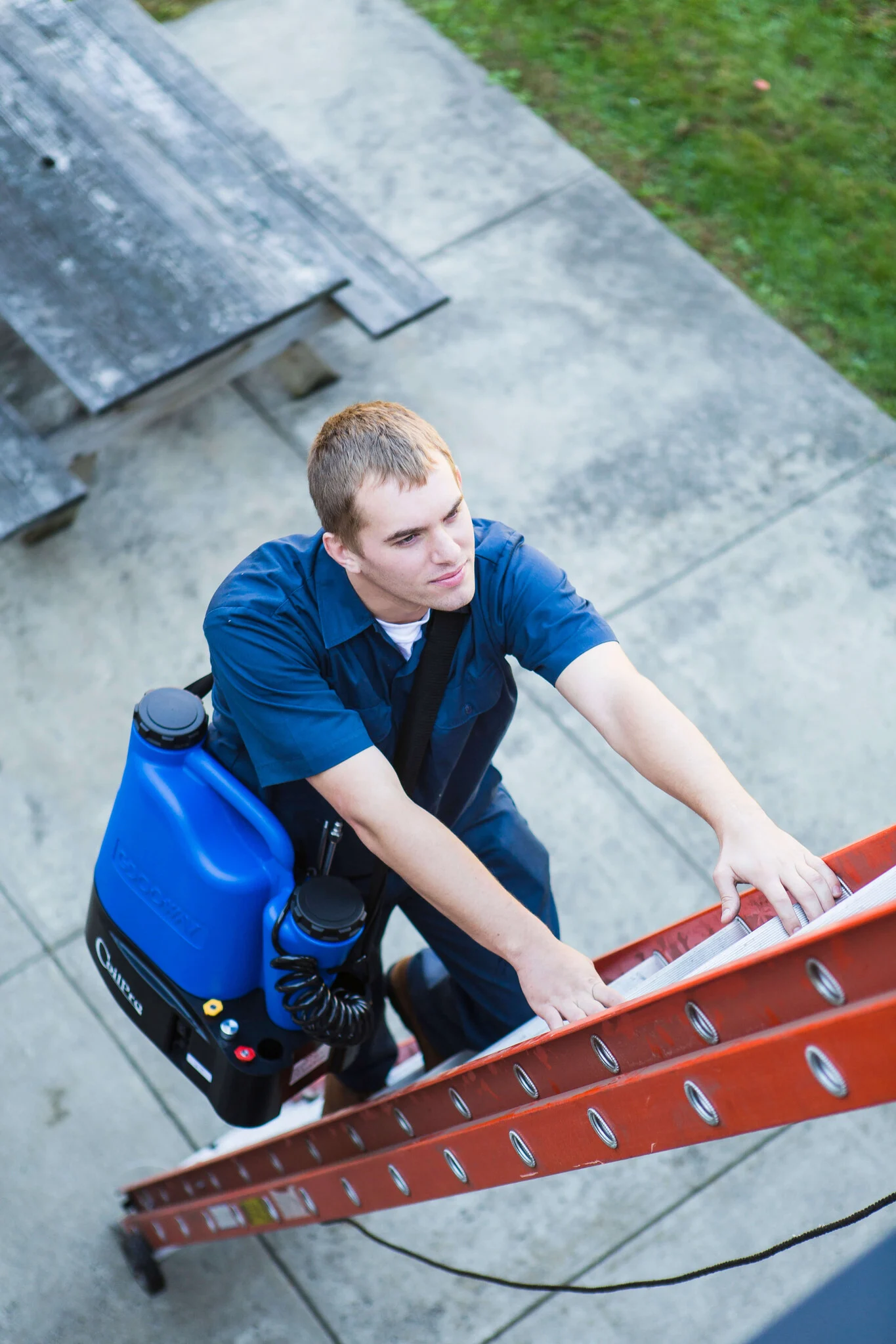 El CC-JR está equipado con una batería recargable de 12 V y dos recipientes de líquido: uno para el agua y otro para el agente limpiador. Esto permite a los operarios limpiar incluso los sistemas más remotos, sin depender de un suministro externo de energía o agua.