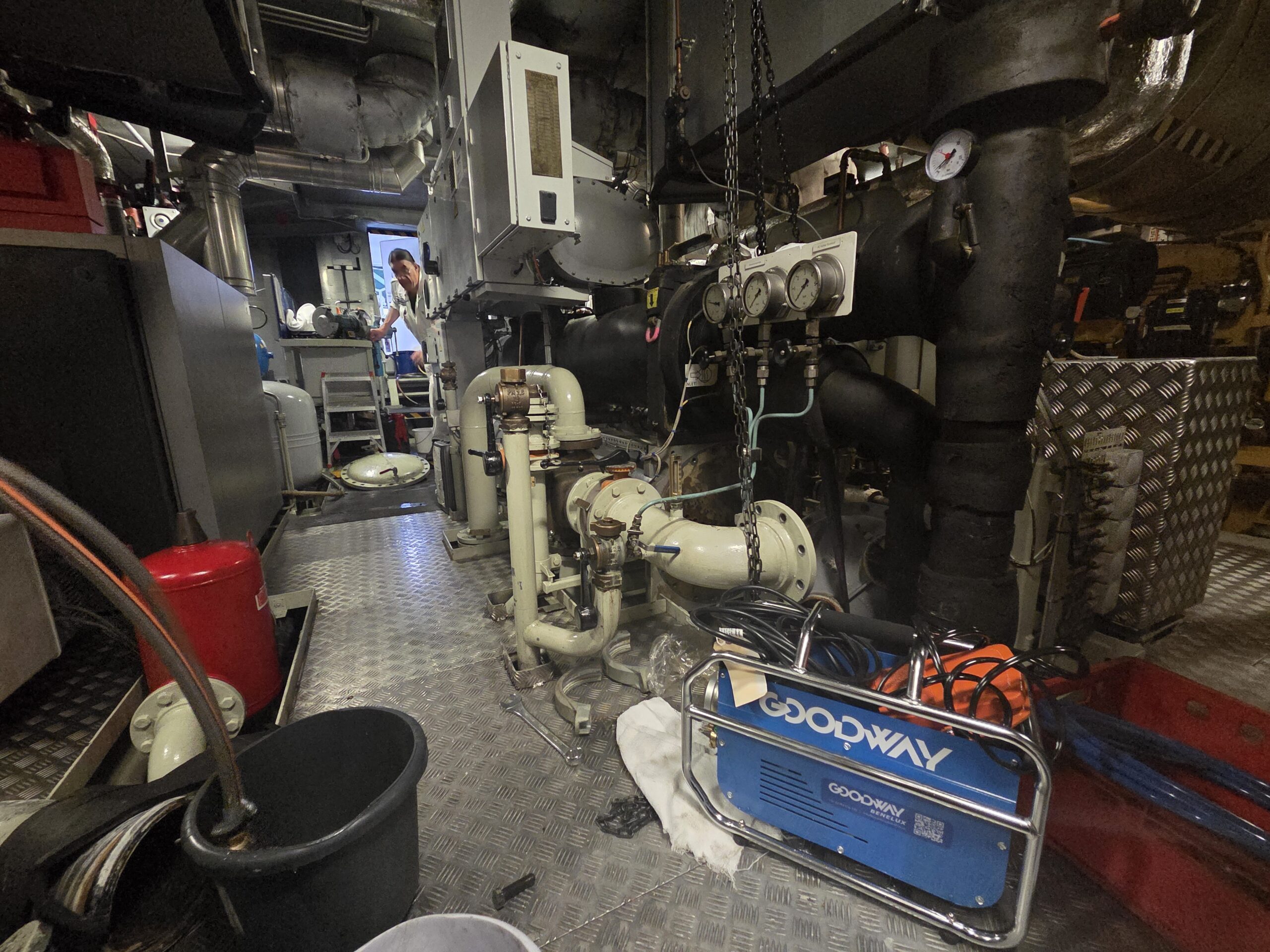 Un experto de Goodway Benelux subió a bordo del barco mientras estaba atracado en Alemania para impartir a la tripulación la formación necesaria para mantener eficazmente el sistema de refrigeración e impartir formación sobre el uso adecuado del equipo.